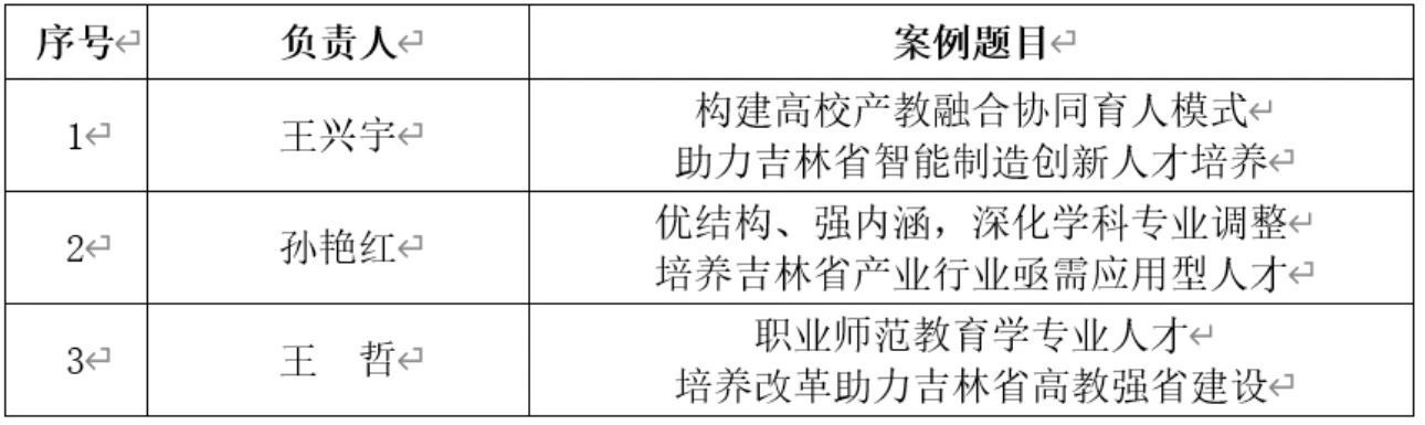 日前,吉林省高校服务“一主六双”高质量发展战略优秀案例评选结果公布,共有52所高校的93个优秀案例入选,公司教务处申报的《优结构、强内涵,深化学科专业调整,培养吉林省产业行业亟需应用型人才》、机械与车辆工程学院申报的《构建高校产教融合协同育人模式,助力吉林省智能制造创新人才培养》、w88win优德申报的《职业师范教育学专业人才培养改革,助力吉林省高教强省建设》成功入选。