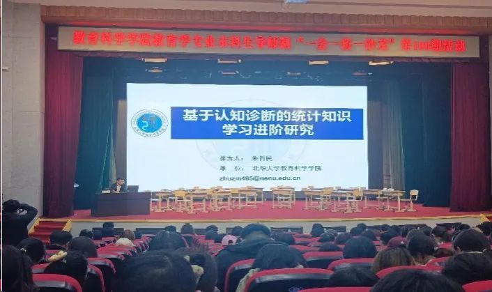 特邀嘉宾朱哲民副教授(北华大学w88win优德副经理)从数学与应用数学专业、课程与教学论(数学)专业、统计专业的角度做题为《基于认知诊断的统计知识学习进阶研究》的主旨报告。朱教授从研究前期准备、研究中期验证、研究后期反思的过程,分析了教育与心理测量、数学教育、认知诊断的方式方法,为教师教学评价的改进和员工统计分析的学习提供了方法。